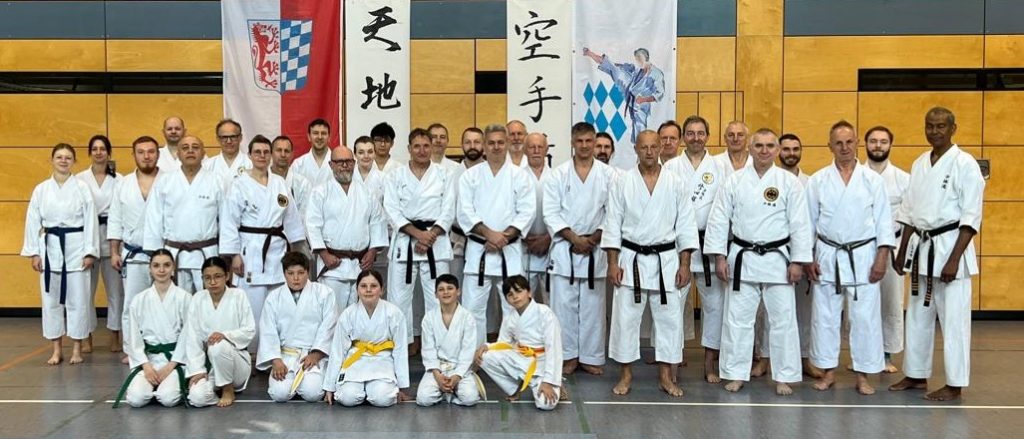 Nach einer wohlverdienten Mittagspause ging es mit einem abwechslungsreichen Programm weiter: Jürgen Pünner (6. DAN) zeigte die Verbindung von Karate und Kyusho Jitsu, während Werner Bachhuber (7. DAN) die Teilnehmer in die Welt des Kobudo einführte.